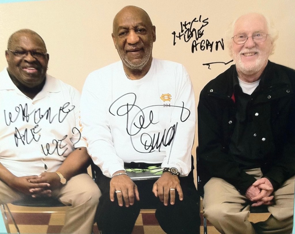 Cosby jokingly writes on the photo pointing to Stu Gardner; “Where are we?“